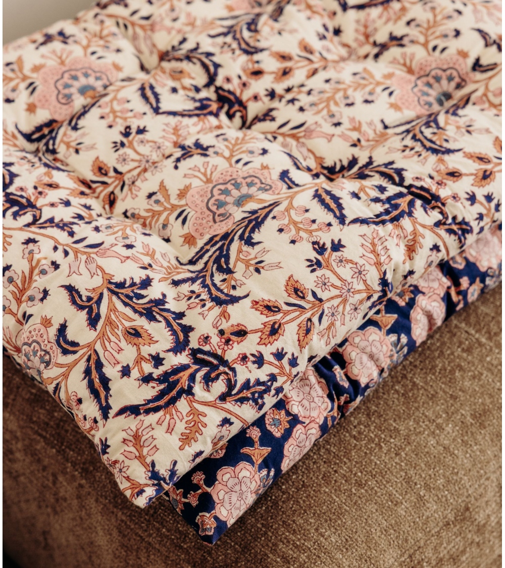 Le matelas d'assise ARCHANA déploie ses motifs fleuris dans des nuances colorées, pour une touche de poésie et de douceur chez vous.