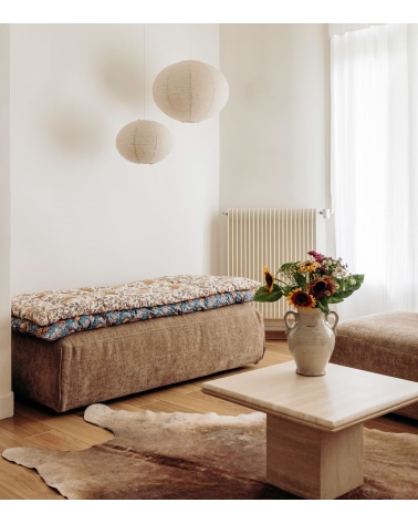 Fabriquée en Inde par des artisans experts selon la technique traditionnelle du blockprint, un savoir-faire ancestral du Rajasthan, cette pièce faite à la main contribue à préserver les savoir-faire traditionnels et à soutenir les communautés d'artisans.