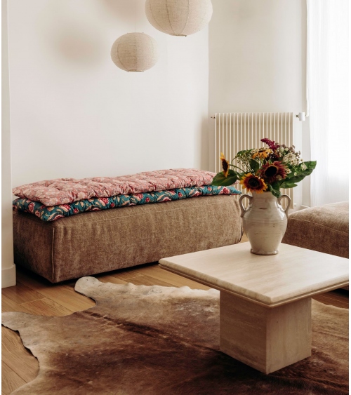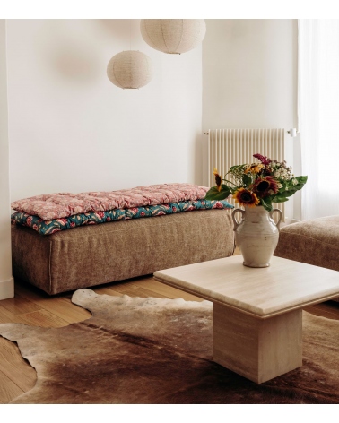 Chaque sofa cover est une création unique, marquée par des irrégularités naturelles et une texture singulière. L’impression artisanale, réalisée à la main, peut comporter de légères variations, reflet du soin minutieux et du savoir-faire transmis à chaque étape de sa fabrication.