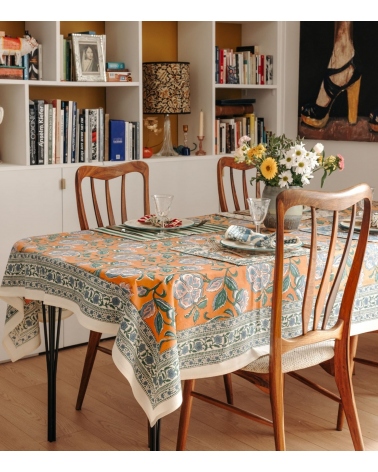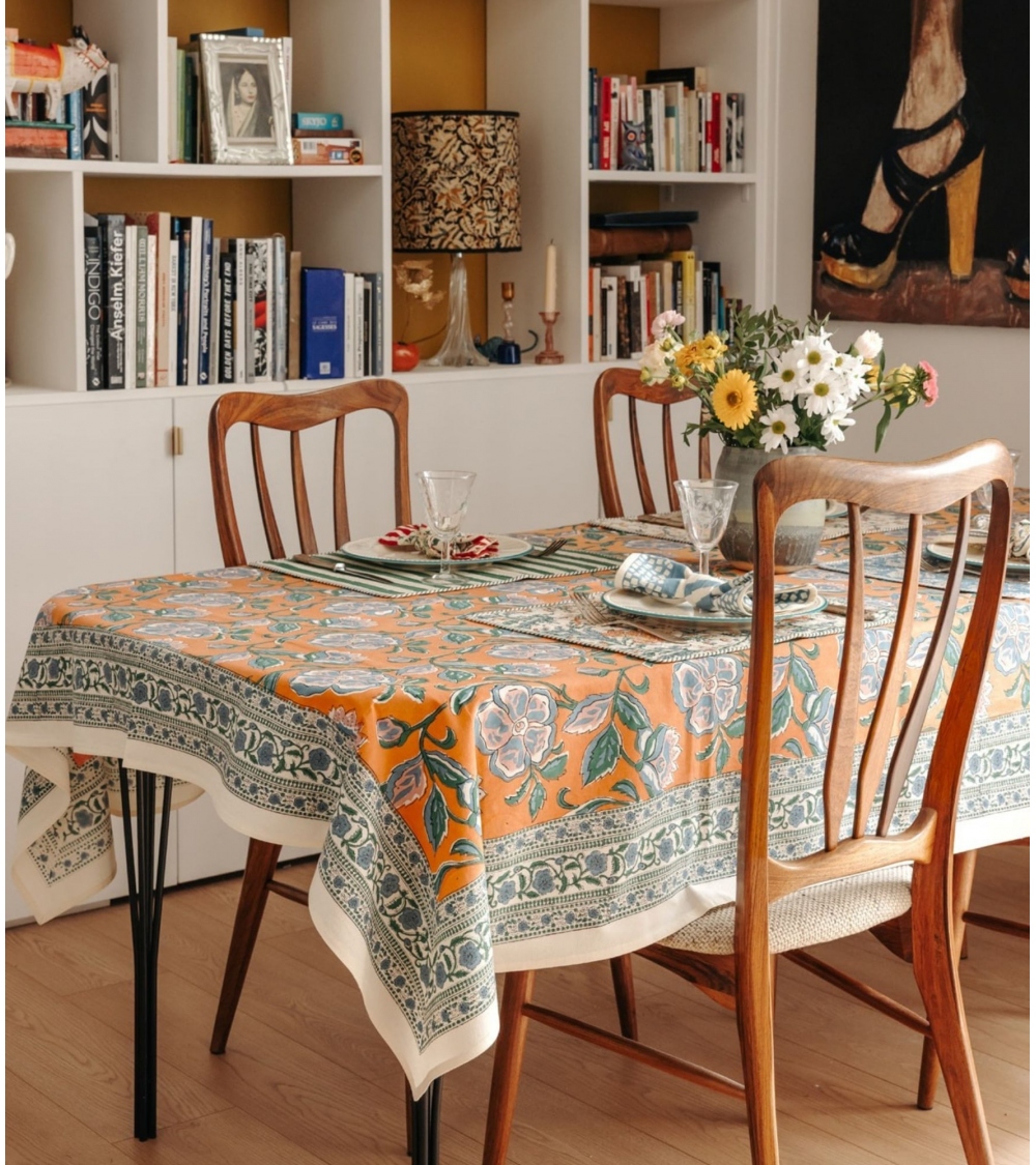 Fabriquée en Inde, cette nappe est le fruit d’un savoir-faire ancestral. Réalisée à la main selon la technique traditionnelle du blockprint, propre au Rajasthan, chaque pièce est façonnée par des artisans passionnés. Ce processus artisanal contribue à préserver les traditions uniques du pays et soutient les communautés locales.