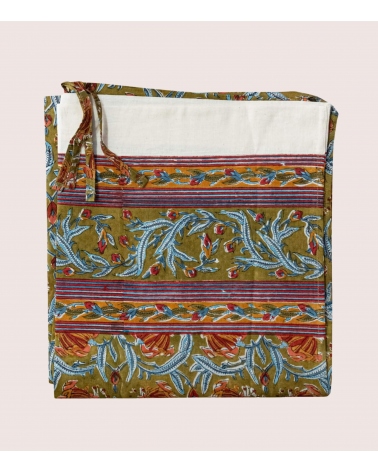 Fabriquée en Inde par des artisans experts selon la technique traditionnelle du blockprint, un savoir-faire ancestral du Rajasthan, cette pièce faite à la main contribue à préserver les savoir-faire traditionnels et à soutenir les communautés d'artisans.
