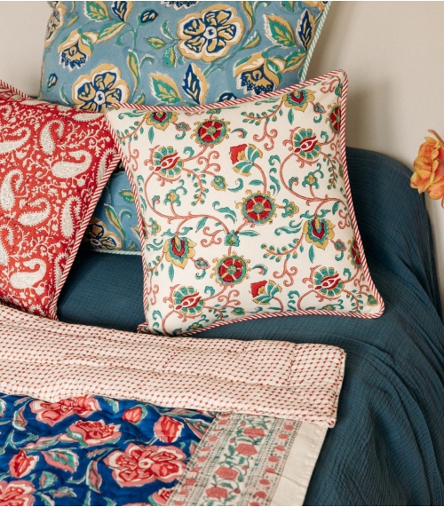 Fabriquée en Inde par des artisans experts selon la technique traditionnelle du blockprint, un savoir-faire ancestral du Rajasthan, cette pièce faite à la main contribue à préserver les savoir-faire traditionnels et à soutenir les communautés d'artisans.