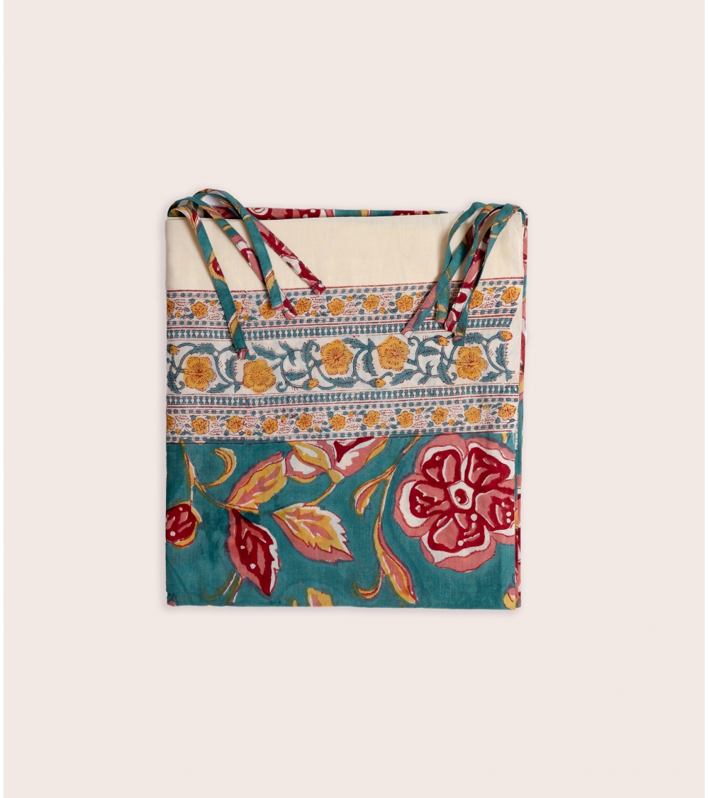 Fabriquée en Inde par des artisans experts selon la technique traditionnelle du blockprint, un savoir-faire ancestral du Rajasthan, cette pièce faite à la main contribue à préserver les savoir-faire traditionnels et à soutenir les communautés d'artisans.