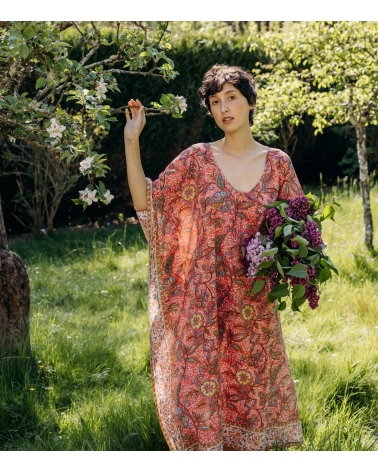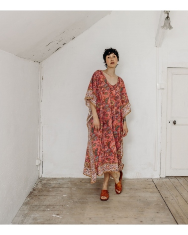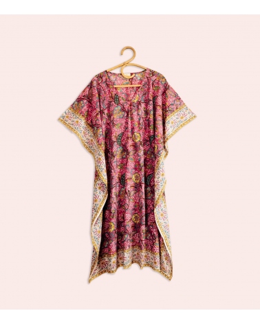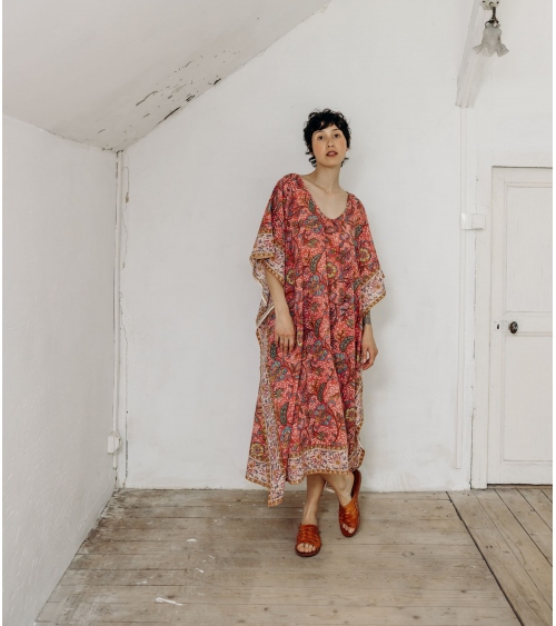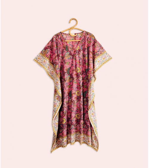 Fabriqué en Inde, ce kaftan est le fruit d’un savoir-faire ancestral. Réalisée à la main selon la technique traditionnelle du blockprint, propre au Rajasthan, chaque pièce est façonnée par des artisans passionnés. Ce processus artisanal contribue à préserver les traditions uniques du pays et soutient les communautés locales.