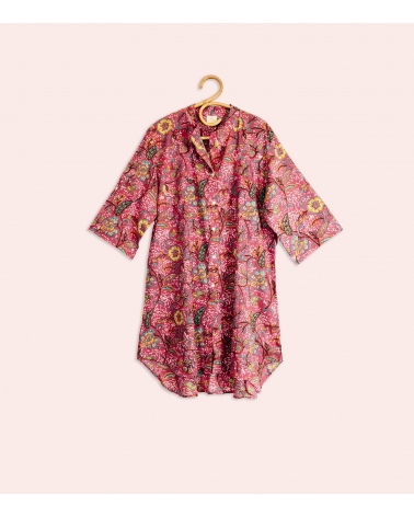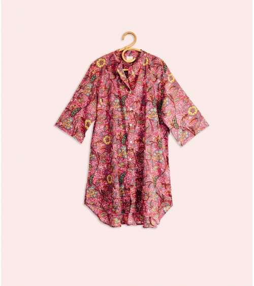 Chaque robe chemise est une création unique, marquée par des irrégularités naturelles et une texture singulière. L’impression artisanale, réalisée à la main, peut comporter de légères variations, reflet du soin minutieux et du savoir-faire transmis à chaque étape de sa fabrication.
