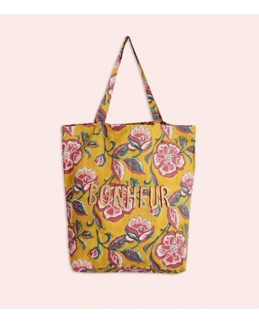 Le tote bag LONI en coton est l’accessoire incontournable pour vos escapades quotidiennes, que ce soit pour une virée shopping, un week-end à la mer ou une sortie au marché. Inspiré par le street art indien, il marie avec élégance un motif fleuri vibrant et un message positif, apportant une touche colorée et pleine de vie à toutes vos tenues.