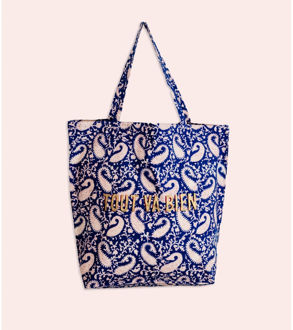 Le tote bag PAISLEY en coton est l’accessoire incontournable pour vos escapades quotidiennes, que ce soit pour une virée shopping, un week-end à la mer ou une sortie au marché. Inspiré par le street art indien, il marie avec élégance un motif fleuri vibrant et un message positif, apportant une touche colorée et pleine de vie à toutes vos tenues.