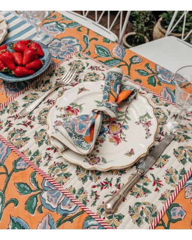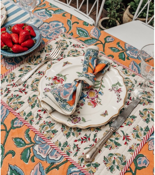 Réalisée en Inde selon la technique traditionnelle du blockprint, un art ancestral du Rajasthan, cette serviette de table est confectionnée à la main par des artisans passionnés. Une création unique qui contribue à préserver un savoir-faire séculaire et à soutenir les communautés locales.
