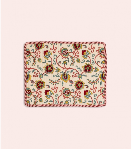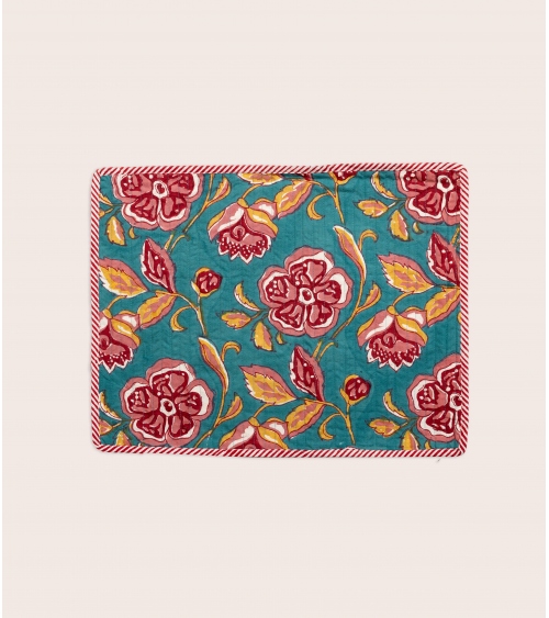 Fabriqué en Inde, ce set de table matelassé est le fruit d’un savoir-faire ancestral. Réalisé à la main selon la technique traditionnelle du blockprint, propre au Rajasthan, chaque pièce est façonnée par des artisans passionnés. Ce processus artisanal contribue à préserver les traditions uniques du pays et soutient les communautés locales.