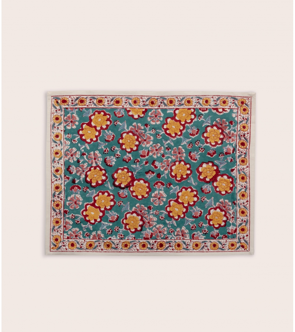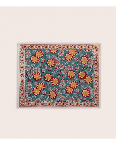 Fabriqué en Inde, ce set de table incarne l'excellence d’un savoir-faire ancestral. Réalisé selon la technique traditionnelle du blockprint, propre au Rajasthan, chaque pièce est confectionnée à la main par des artisans passionnés. Un geste précieux pour préserver des traditions artisanales uniques et soutenir les communautés locales.