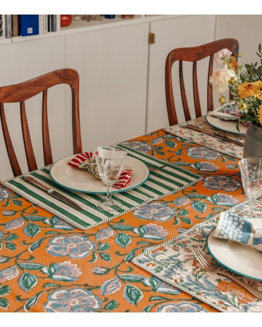 Le set de table matelassé Lathi est lavable en machine à 30°C. Privilégiez un séchage à l'air libre pour préserver ses couleurs et la qualité de son impression block print dans la durée.