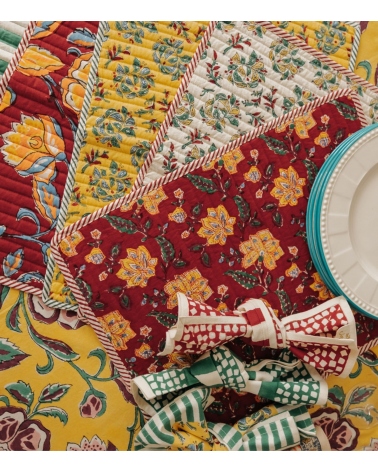 Le set de table matelassé Rang est lavable en machine à 30°C. Privilégiez un séchage à l'air libre pour préserver ses couleurs et la qualité de son impression block print dans la durée.