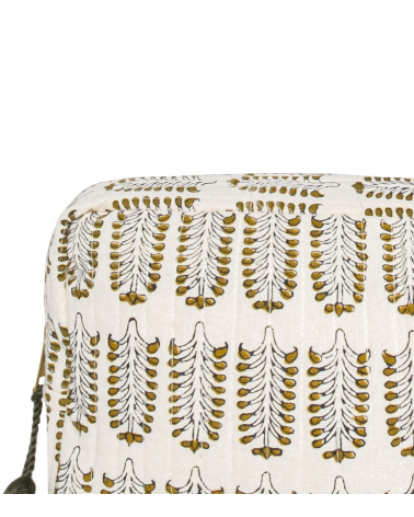 La trousse matelassée à pompon BOOTIE sera votre compagnon de voyage idéal. À offrir ou à s'offrir, son élégant motif végétal ajoutera une touche chaleureuse dans une salle de bain.