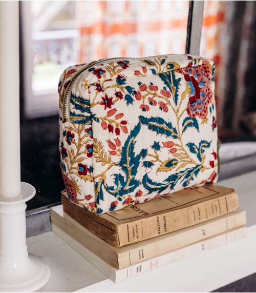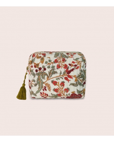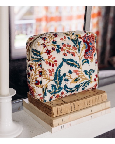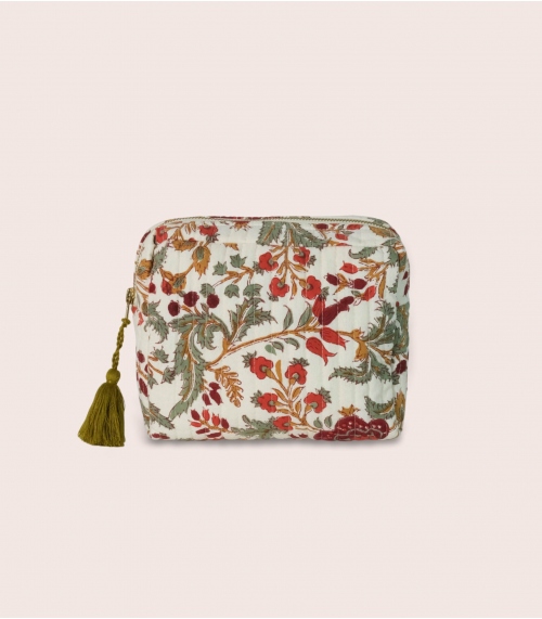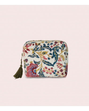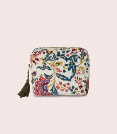 La trousse matelassée à pompon ARCHANA sera votre compagnon de voyage idéal. À offrir ou à s'offrir, son élégant motif fleuri ajoutera une touche chaleureuse dans une salle de bain.