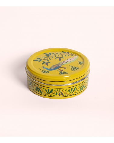 La boîte ronde Jamini est un écrin de vaisselle artisanale indienne en inox, peinte à la main par des maîtres artisans du Cachemire. Elle se pare d’une palette riche de motifs fleuris et animaliers : paons royaux, arabesques végétales et fleurs stylisées pour une vaisselle déco qui évoque les forêts tropicales de l’Inde. Idéale pour conserver épices, bijoux ou petits trésors, son couvercle s’ajuste en douceur pour une protection optimale.